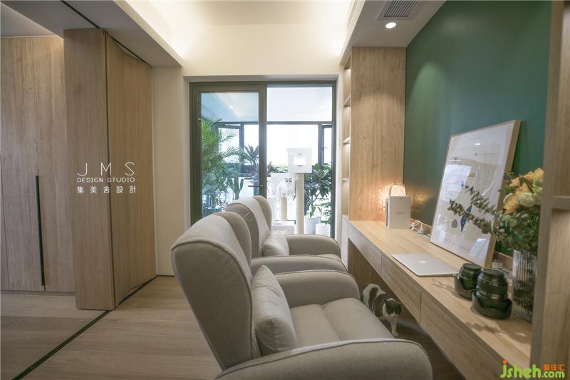 而一個(gè)豐富有趣的生活絕對(duì)缺不了多樣的愛好。房主是游戲迷,所以設(shè)計(jì)師將靠近內(nèi)側(cè)的一間次臥改造成書房兼游戲室,閑暇的周末男主可與一二好友相約一戰(zhàn),輸贏不是必須,但求酣暢淋漓。