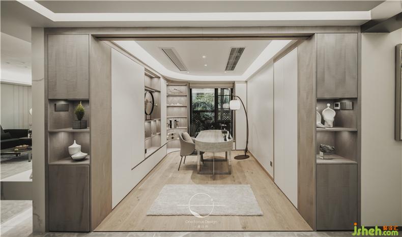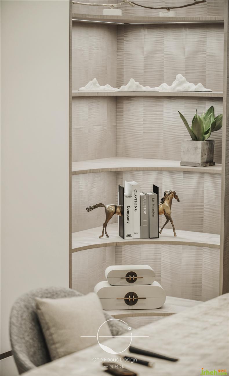 從客廳移步,便來(lái)到書(shū)房。設(shè)計(jì)上以景入畫(huà),裝修設(shè)計(jì)窗外綠植和屋內(nèi)書(shū)香相映成趣,讓主人在忙碌之余也能享受到自然趣味