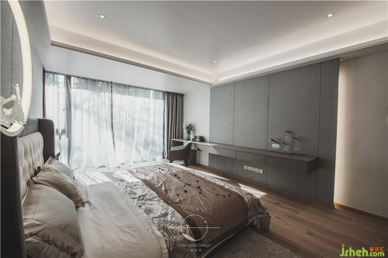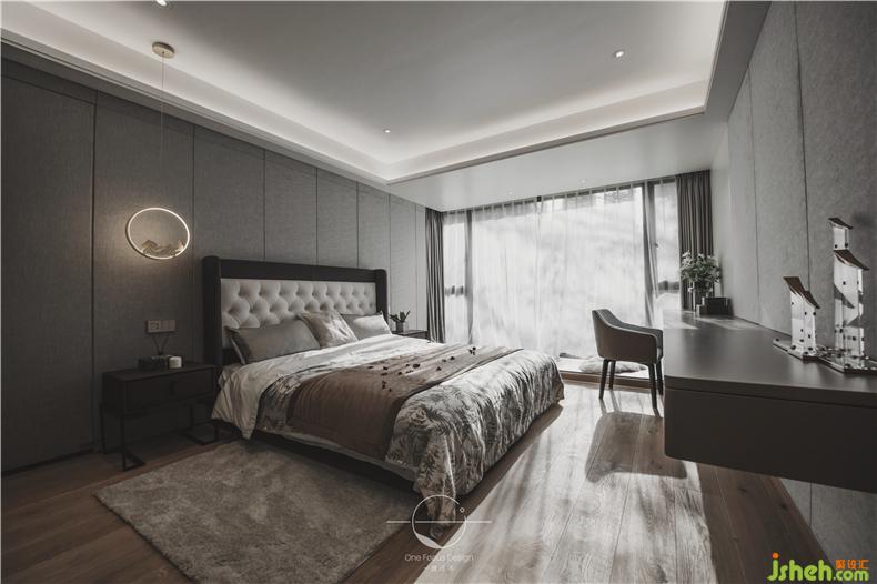 主臥的設(shè)計(jì)更表現(xiàn)了設(shè)計(jì)師手法的純熟和對(duì)生活的感知。主臥整體顏色偏灰,裝修設(shè)計(jì)風(fēng)格簡(jiǎn)約在這樣寧?kù)o的氛圍里主人能夠得到充分的休息。大大的落地窗則保證了白天的采光,光線透露窗簾,有一種別樣的溫柔。
