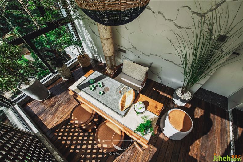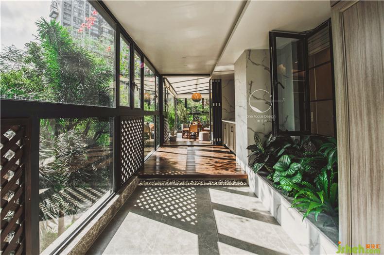 對(duì)于現(xiàn)代人來(lái)說(shuō),最能提升幸福感的莫過(guò)于一個(gè)大而美的陽(yáng)臺(tái)。閑暇時(shí)眺望城市景色,是新的生活風(fēng)潮。設(shè)計(jì)師將原來(lái)空調(diào)井的部分用木地板覆蓋,連接起兩個(gè)陽(yáng)臺(tái),創(chuàng)造了獨(dú)一無(wú)二的詩(shī)意棲居地