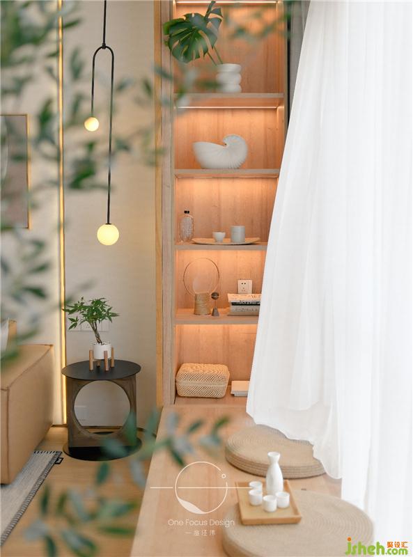 原木的色澤與暖調(diào)的燈光交輝相應(yīng),陽光透過紗質(zhì)窗簾滲入室內(nèi),精致的日式空間在流動(dòng)的光與影中顯得禪意滿滿,古樸雅致。