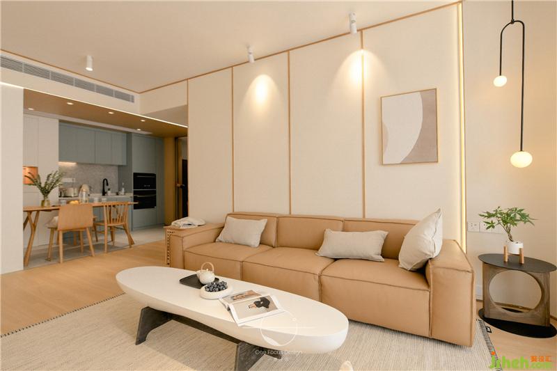 客廳整體造型簡潔精致,色調(diào)柔和。原木肌理與自然綠植相結(jié)合,給人以返璞歸真、怡然自得的感覺。