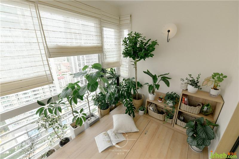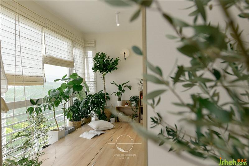 榻榻米的設(shè)計(jì)讓喜愛(ài)撫琴的居者隨時(shí)能席地而坐,彈奏一曲。種滿綠色植物的陽(yáng)臺(tái)搭配自然柔和的陽(yáng)光,禪意的氛圍撲面而來(lái)。