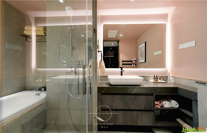 衛(wèi)生間干凈利落的直線造型營造出帶有序列感的平面視覺,霧化玻璃的設計既解決了光線差的問題,又能更好地與主臥溝通,考究之處呈現(xiàn)出對生活細節(jié)的推敲,透露出主人不俗的品味。