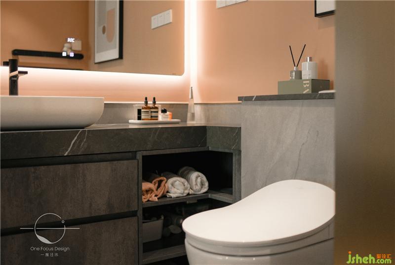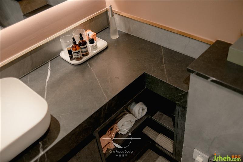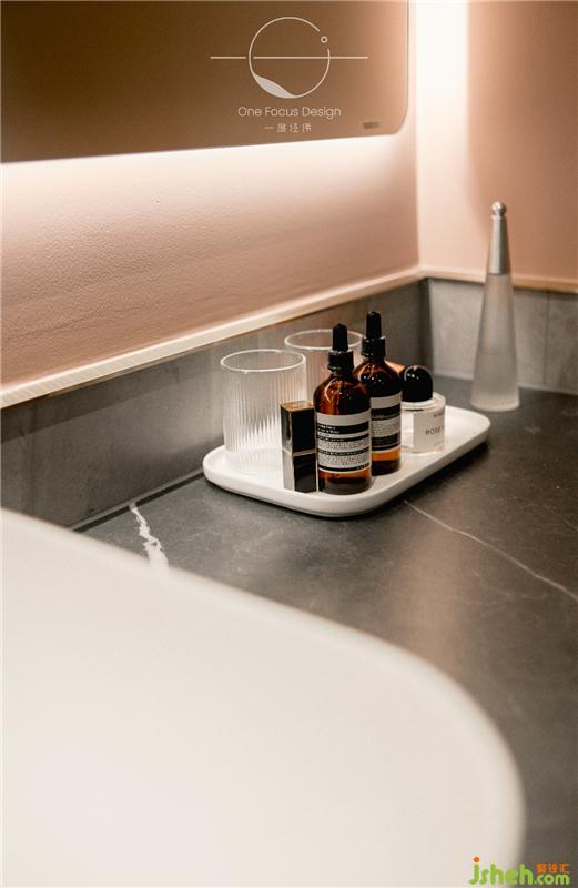黑色大理石的洗漱臺與暖調(diào)墻面的組合,產(chǎn)生自然與前衛(wèi)的強烈對比,靈動而時尚。