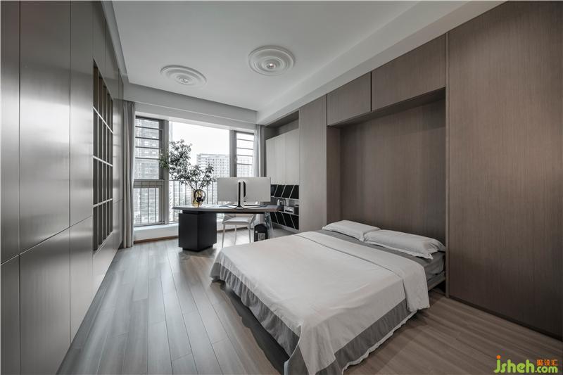 生活需要與人相處,也需要自己的獨處空間。書房不僅僅是男主人的辦公地點,更是他個人的休閑娛樂空間。內(nèi)嵌式的單人床不僅節(jié)省了空間,更讓他能夠更好地享受個人時光,滿足對獨立空間的所有幻想。