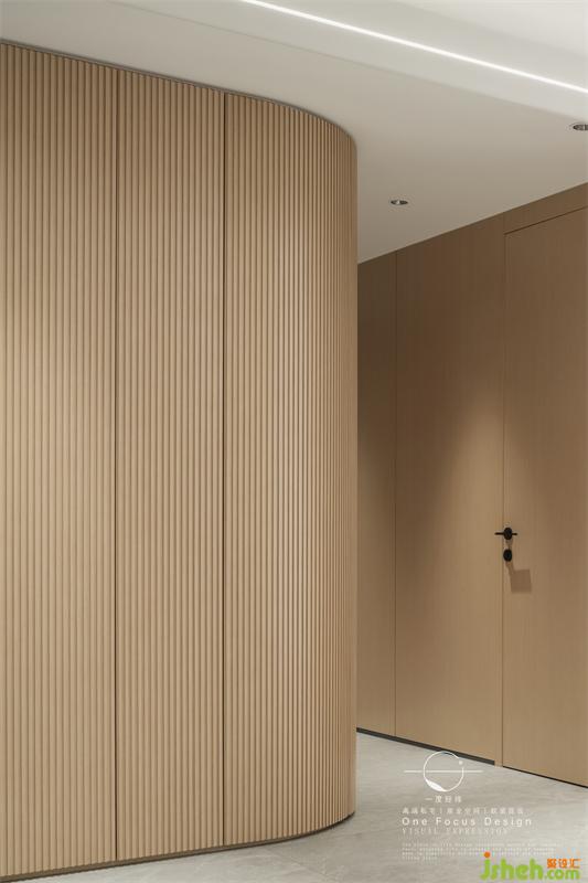 在空間布局上十分簡明通透,沒有多余花哨的裝飾,柔和溫馨的氛圍給客廳增添了別樣的魅力。整體統(tǒng)一運用木飾面,將空間的精致與格調(diào)一覽無遺地詮釋著舒適