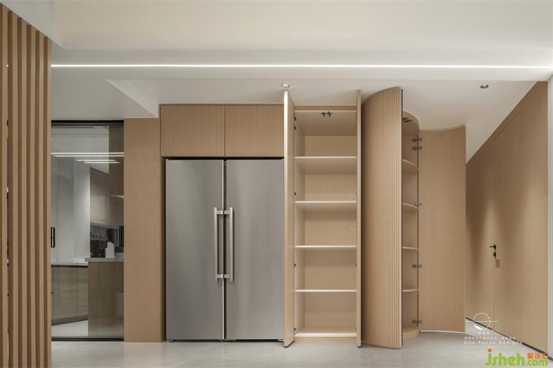 平常業(yè)主會習慣囤一些零食和日常用品,隨著家中小孩的成長,儲物空間的需求日益增多。設(shè)計師在此設(shè)置了大量的儲物空間,便于業(yè)主囤放物品。