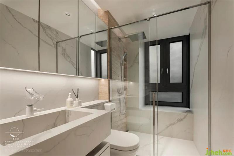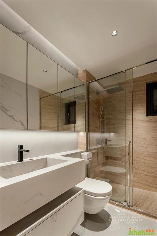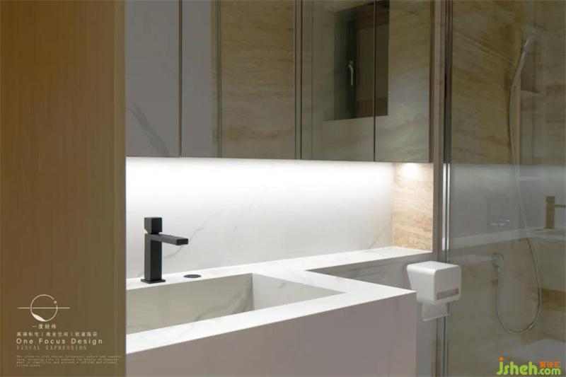 主衛(wèi)空間同樣寬敞,通過白色調(diào)的材質(zhì)搭配明亮的光線,顯得輕松而自在。呈現(xiàn)自然本真,純粹的一面,讓業(yè)主在簡單中享受舒適的質(zhì)感。