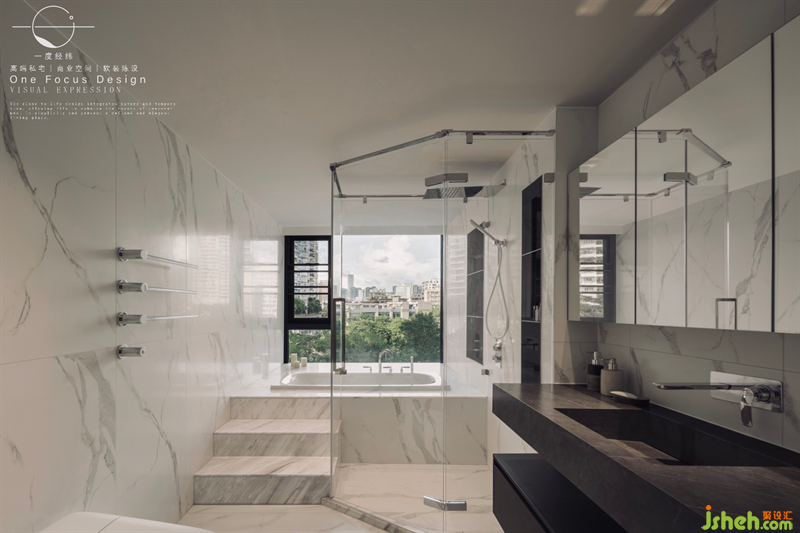 從臥室進入,步入衣帽間再到主衛(wèi),每個空間的邁入都是設(shè)計師精心布置的細(xì)節(jié),讓居者有種莊重的儀式感。主衛(wèi)不僅做了干濕分離的分區(qū)也做了階梯,增添了空間的層次感與舒適度。望著窗外泡澡,享受生活的愜意和美好!