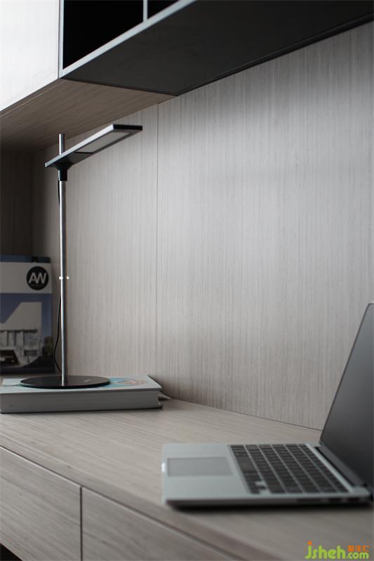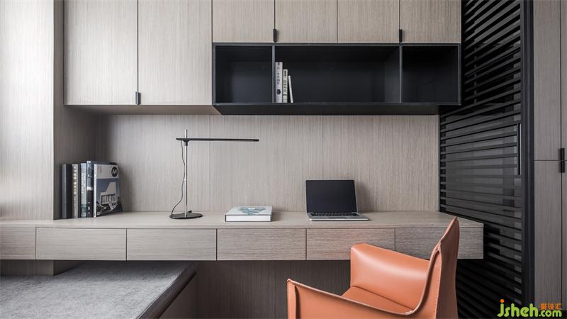 柔潤而低飽和的色塊錯(cuò)落于置物架,與書桌形成緊密勾連,以不規(guī)則的分割形式呈現(xiàn)書房獨(dú)一無二的風(fēng)貌