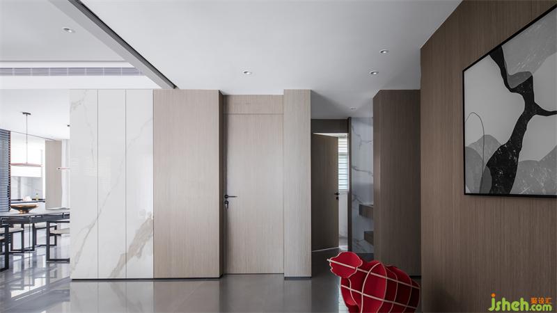 走廊沒有做過多的修飾,一幅看起來簡單卻意味深長的畫作,意在傳達(dá)一種啟發(fā)性,使居住者無論置于何處,都能激發(fā)新的靈感。