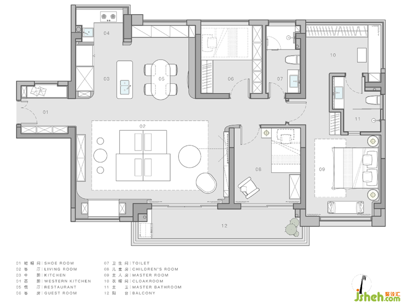 私宅主人為一對私營企業(yè)夫婦,育有一女孩。男主人性格內(nèi)斂,喜歡看書與思考;女主人干練而富有主見,尤其重視孩子的教育。因從事建材行業(yè)工作,故對家居設(shè)計接受度相對較高,空間設(shè)計關(guān)注焦點除了日常使用功能外,更關(guān)注安全性與材質(zhì)的環(huán)保性,以及以孩子為主體的小區(qū)朋友鄰里的社交。