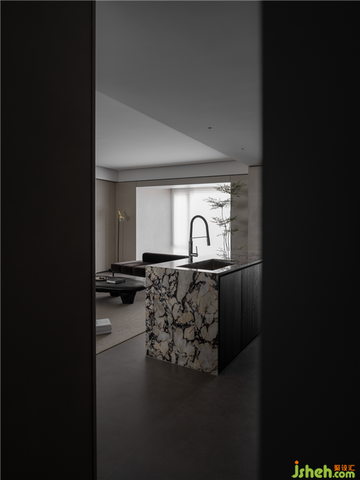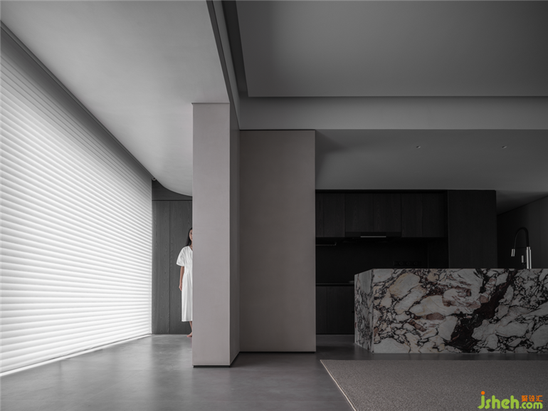 家是一面生活的鏡子,或是慌忙雜亂,或是安定沉靜,或是趨向物化,或是趨向精神。私宅設(shè)計(jì)空間會(huì)產(chǎn)生某種環(huán)境磁場(chǎng)而影響人的心緒,設(shè)計(jì)師幾乎將所有日常生活功能性都收納起來,大面積的留白,使它呈現(xiàn)出一種簡(jiǎn)單清晰的確定性,以及一種想要閑下來做些什么的交互性,從而讓這個(gè)“家”產(chǎn)生一種放松得下來的安定感,以及某個(gè)時(shí)刻燃得起熱情的儀式感。