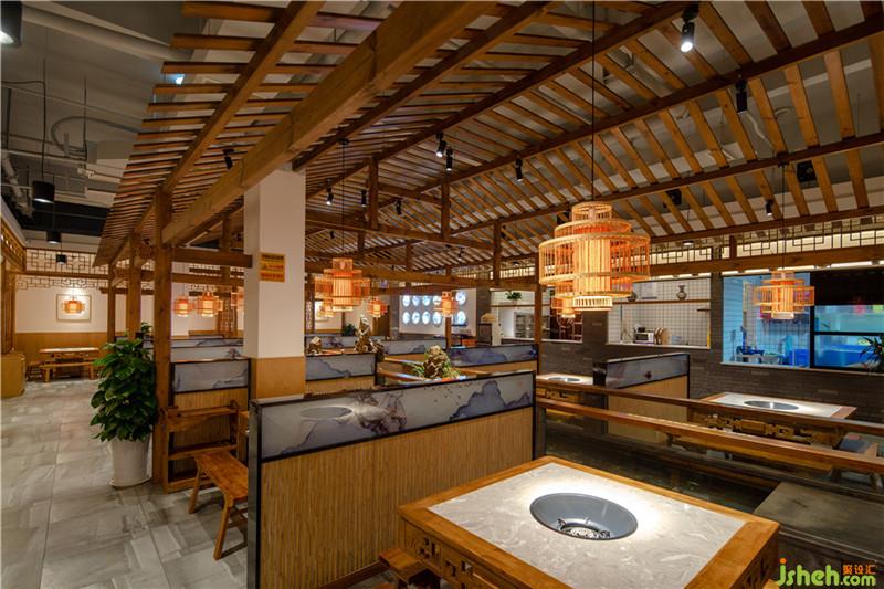 本案在設(shè)計(jì)理念上采取新式川派魚火鍋概念設(shè)計(jì),空間中注入中國傳統(tǒng)人文元素,把中式元素精簡提煉,非常和諧的融入進(jìn)去,增添了空間的品質(zhì)與文化內(nèi)涵,使其空間具有人文溫度。整體色調(diào)采取淺咖色色調(diào),色彩上清新愉悅。