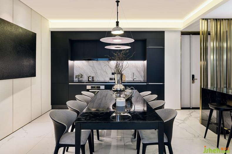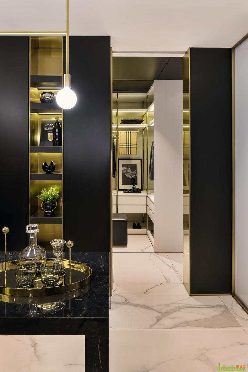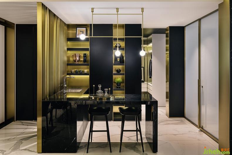 現(xiàn)代公寓設(shè)計(jì)多半是以白色為基調(diào),而在本項(xiàng)目中,黑色元素卻帶來了意想不到的效果。深圳設(shè)計(jì)公司中熙設(shè)計(jì)設(shè)計(jì)巧妙利用局部的金屬和玻璃提升品質(zhì),細(xì)膩的金屬質(zhì)感和黑色基調(diào)賦予了整個(gè)空間神秘的氛圍和格調(diào)??臻g元素,色彩本是單一的,為了讓不同深度的黑色組成完美的協(xié)奏曲,設(shè)計(jì)師依著空間的屬性、多層次的交疊,組合出空間機(jī)能的各個(gè)面向,并通過富有趣味性的藝術(shù)裝置來打破黑色空間的沉悶,結(jié)合多樣化的自由擺放形式來體現(xiàn)層次和獨(dú)特性。