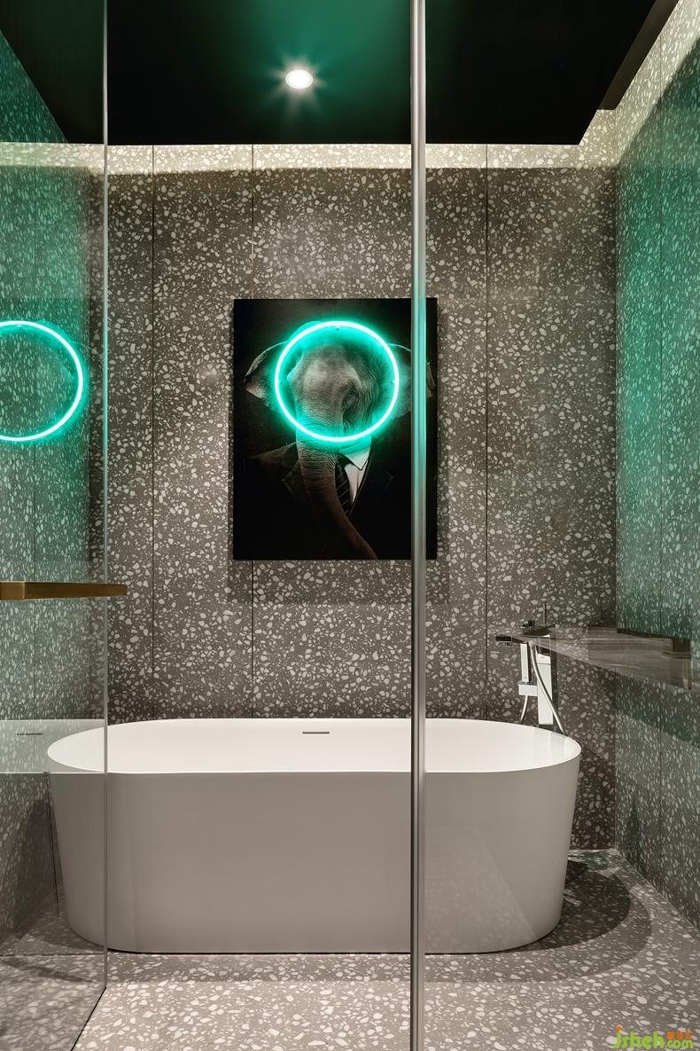 浴室被營造出了宛如科幻電影《銀翼殺手》里濃厚的霓虹氛圍,讓人移步至此仿佛沉浸到未來科幻世界之中。空間的感知不單單是材質(zhì)的運(yùn)用,更重要的是結(jié)合光影的變化,哪怕是一個(gè)小點(diǎn)綴,深圳設(shè)計(jì)公司單純不繁瑣也能讓層次感豐富有趣起來。