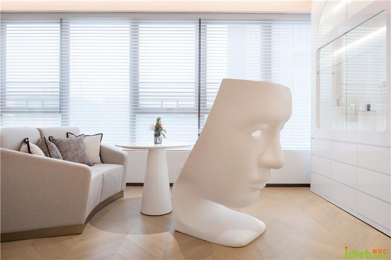 藝術(shù)向來是中熙設(shè)計的標(biāo)簽之一,在項目中引入藝術(shù)家的原創(chuàng)作品,總能為空間帶來令人驚嘆的視覺效果和情感張力。治療區(qū)走廊盡頭墻上懸掛的藝術(shù)家組合Virut& Jane的藝術(shù)作品,利用時尚雜志中的女性圖片或相關(guān)文字拼貼而成肖像畫作,再用油彩上色,令來訪者紛紛駐足品味。在診斷室和病房,青年藝術(shù)家孫影“和臉有關(guān)的故事”,則展示了前衛(wèi)的油畫創(chuàng)作系列,這個項目體現(xiàn)出中熙設(shè)計的設(shè)計思維:空間需要藝術(shù),而藝術(shù)也成就了空間。