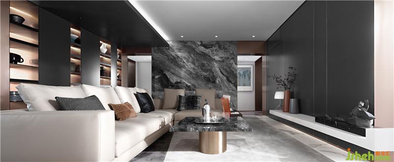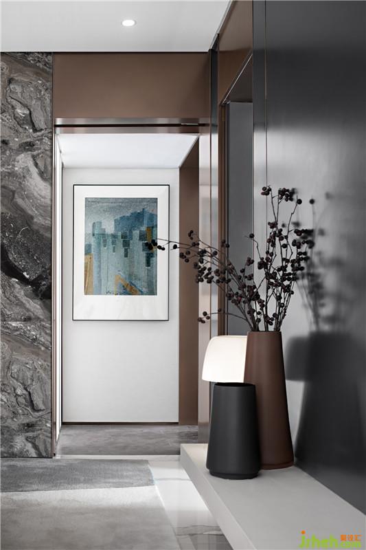空間以灰色調(diào)作為主調(diào)性,讓整個(gè)空間顯得沉穩(wěn),寧?kù)o,彰顯奢華氣度。進(jìn)口淺米色編織地毯均勻了室內(nèi)的暗色,讓空間在莊嚴(yán)中透露出舒適的空隙,為客廳留出一方閑適之逸。