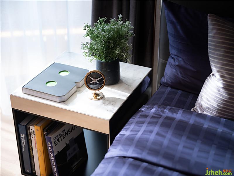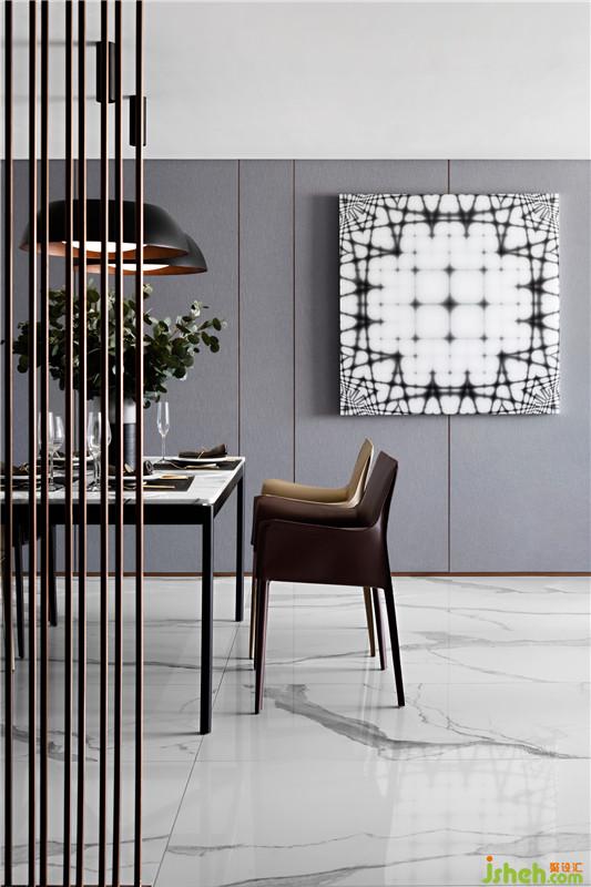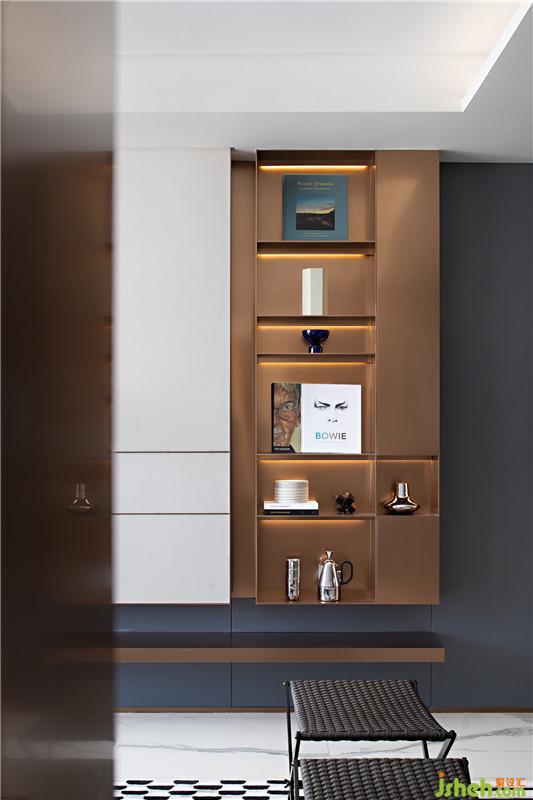 空間里特定的材質(zhì)及顏色不停地在重復(fù)出現(xiàn),建立一種秩序空間的和諧與精神。于不動(dòng)聲色中為空間賦予可感知的生活態(tài)度。玄關(guān)柵欄的玫瑰金在冷酷的空間色調(diào)中泛著溫柔的冷冽,在空間中重復(fù)出現(xiàn),包括客廳的電視柜,及臥室的背景墻,隱約中似乎感覺到這個(gè)空間的主人冷靜的外表下好奇探索的內(nèi)心。