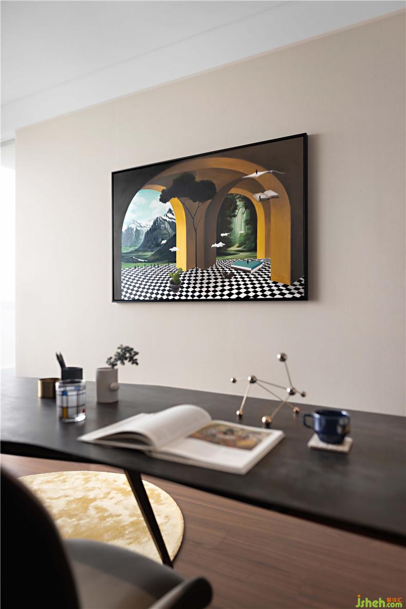 馬格里特Magritte,Rene(1898~1967)比利時(shí)畫家,是超現(xiàn)實(shí)主義重要代表人物,擁有很多成功作品,而且他的很多作品都和他自己有關(guān)。在他看來,人的眼睛只是一面錯(cuò)誤的鏡子,因?yàn)樗玫降闹皇亲匀坏幕糜?,而不是自然本身。裝修設(shè)計(jì)在馬格里特的作品中,夢幻的感覺并不由于歪曲和變形,而是正??梢姷氖挛锓胖迷谝黄鸬臎_突感。