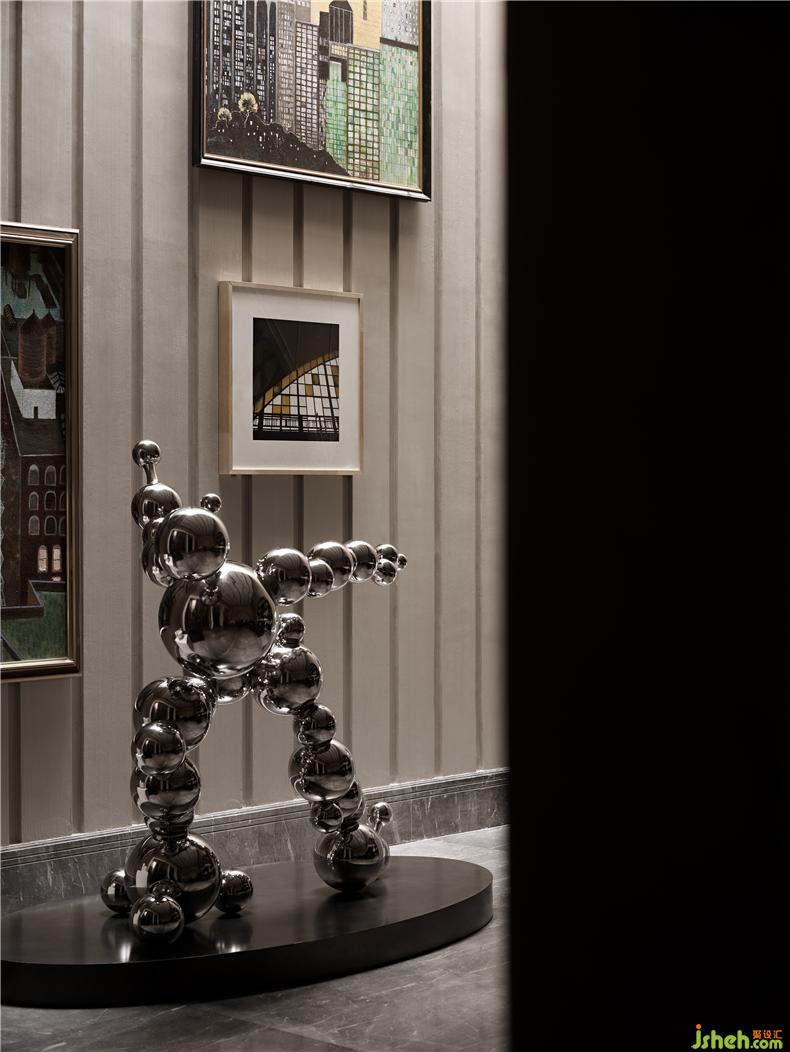 所以本案在設(shè)計(jì)中WED中熙設(shè)計(jì)還原了別墅主人豐富的精神世界,大量的藝術(shù)作品、別墅裝飾爵士音樂主題房間、剛剛傳入中國的網(wǎng)球運(yùn)動,以及豐富的收藏……