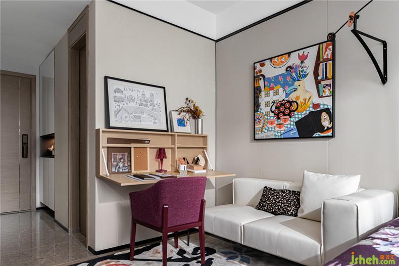 工作完畢,收起書桌,可以窩在沙發(fā)煲劇吃零食;裝修設計三五好友來了,折疊桌可以成為自助餐臺,大家自便,輕松嗨起來!