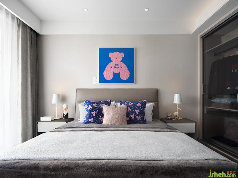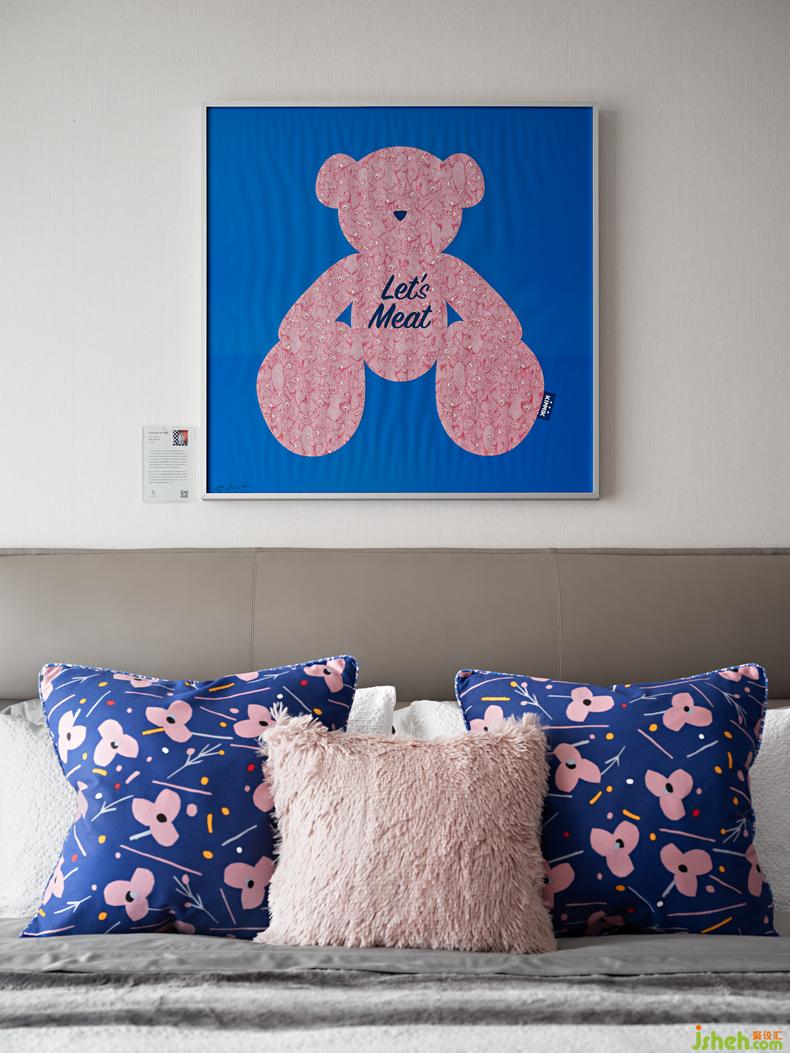 設(shè)計(jì)師為女兒房精心搭配了潮流藝術(shù)家葉子樂的《Let’s Meat Bear 》,別具一格的視覺語言和濃烈色彩的鋪排與沖撞營(yíng)造女孩空間特有的明快爛漫。