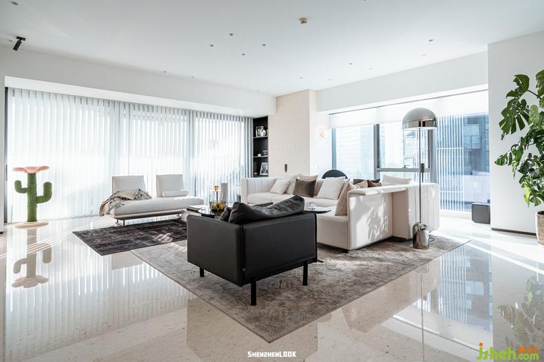 周圍層巒聳翠、盈盈湖水,從上方俯瞰,4萬(wàn)㎡的天鵝湖一覽無(wú)余,加上富有人文藝術(shù)氣息的何香凝美術(shù)館、世界之窗、OCT-LOFT創(chuàng)意文化園等,與李先生選擇華僑城的初衷不謀而合,這里自然寧?kù)o的生活環(huán)境定調(diào)了舒適自在的生活狀態(tài)。在我們看來(lái),室內(nèi)設(shè)計(jì)與建筑、周邊環(huán)境有著不可分割的關(guān)系。