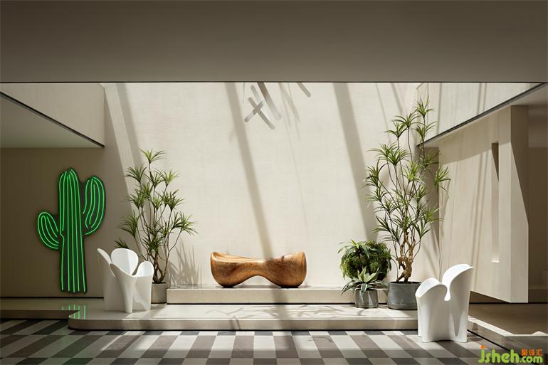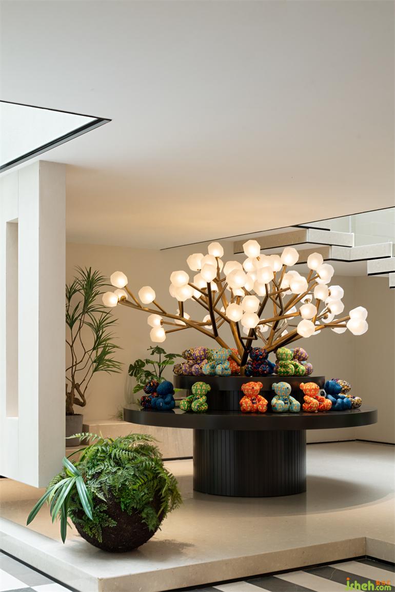 “夢境”的有形存在藏身于幾何的遮擋中,柔和的燈光與樹枝擬態(tài)的造型讓夢境的情景感更為真實(shí),生活美學(xué)館設(shè)計(jì)綠植造景超脫自然季節(jié)的限制與空間融為一體。