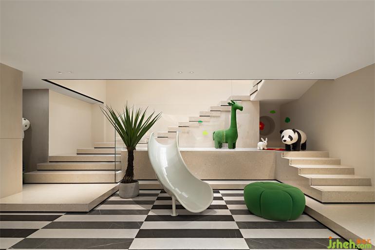 通過(guò)對(duì)未知領(lǐng)域的場(chǎng)景想象,觸及并完成宇宙、暗物質(zhì)以及未來(lái)儲(chǔ)備的設(shè)想,致敬萬(wàn)物生靈。生活美學(xué)館設(shè)計(jì)鮮明的撞色藝術(shù)品、可愛(ài)的玩偶、有趣的滑梯擺設(shè),用不同的存在維度,讓童趣對(duì)話藝術(shù)。