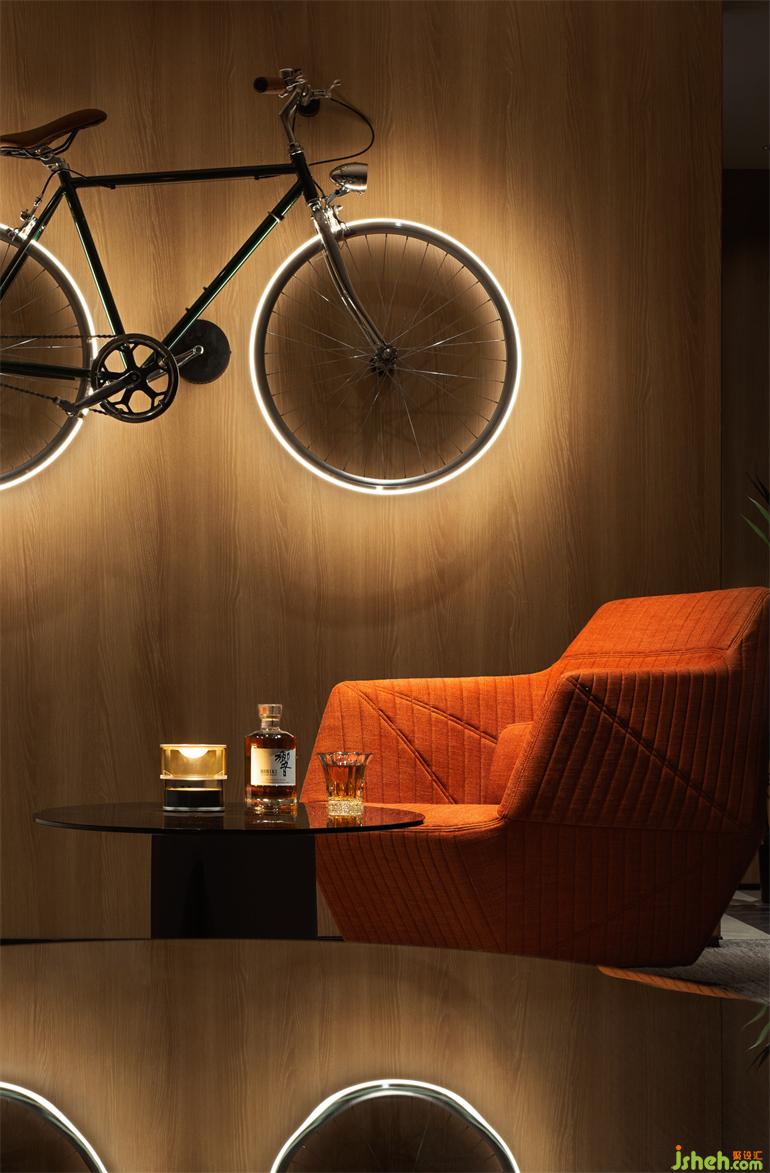 由復(fù)古自行車改造而成的墻面燈具,生活美學(xué)館設(shè)計(jì)以視覺(jué)藝術(shù)的張力模糊著空間與感知、時(shí)間與現(xiàn)實(shí),造型獨(dú)特的落地?zé)粼邳c(diǎn)亮空間的同時(shí),文雅中不失活躍趣味和沉思的神秘感,為生活靈感續(xù)杯。