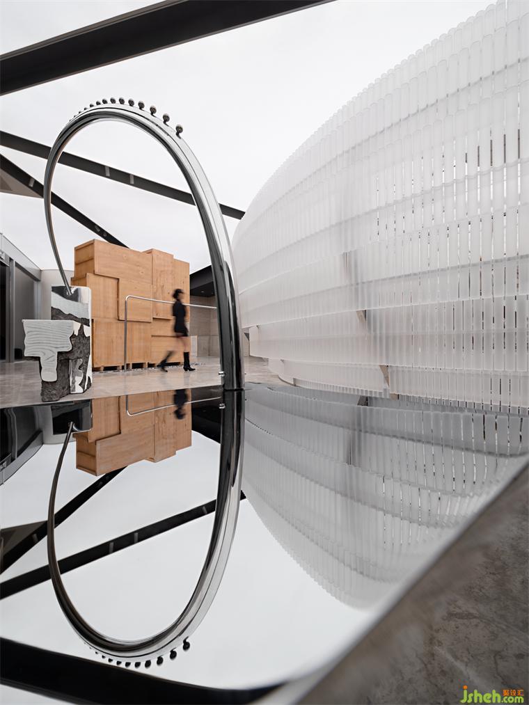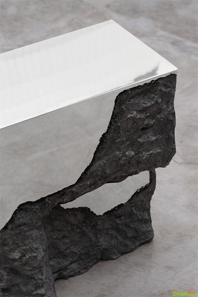 與此同時,金屬與石材相嵌的支撐架,改變了枯燥平淡的展示方式。亦如一個充盈著嶄新秩序的世界,包容、多面性在此集聚,在打破規(guī)章定義的同時,也令產品多了一種獨一無二的美。