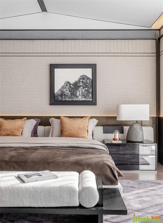 遠(yuǎn)古時(shí)期,自然環(huán)境的限制支配了人的活動(dòng)范圍,超越這一個(gè)個(gè)階段后,如今真正能主宰人們生活的,便是人的獨(dú)一無二的意志。藝術(shù)在這中間充當(dāng)著審美隱喻的角色,無形之中溝通著人與人的品位共鳴。杭州萬科白鷺郡西安嵐別墅設(shè)計(jì)屋脊之下,繁雜之物被逐一剔除,空間中所余的皆是回歸本真的物象,雅灰調(diào)從休憩區(qū)蔓延至?xí)?、衣帽間,這讓主臥空間時(shí)常被一種經(jīng)典優(yōu)雅的氣質(zhì)所籠罩。