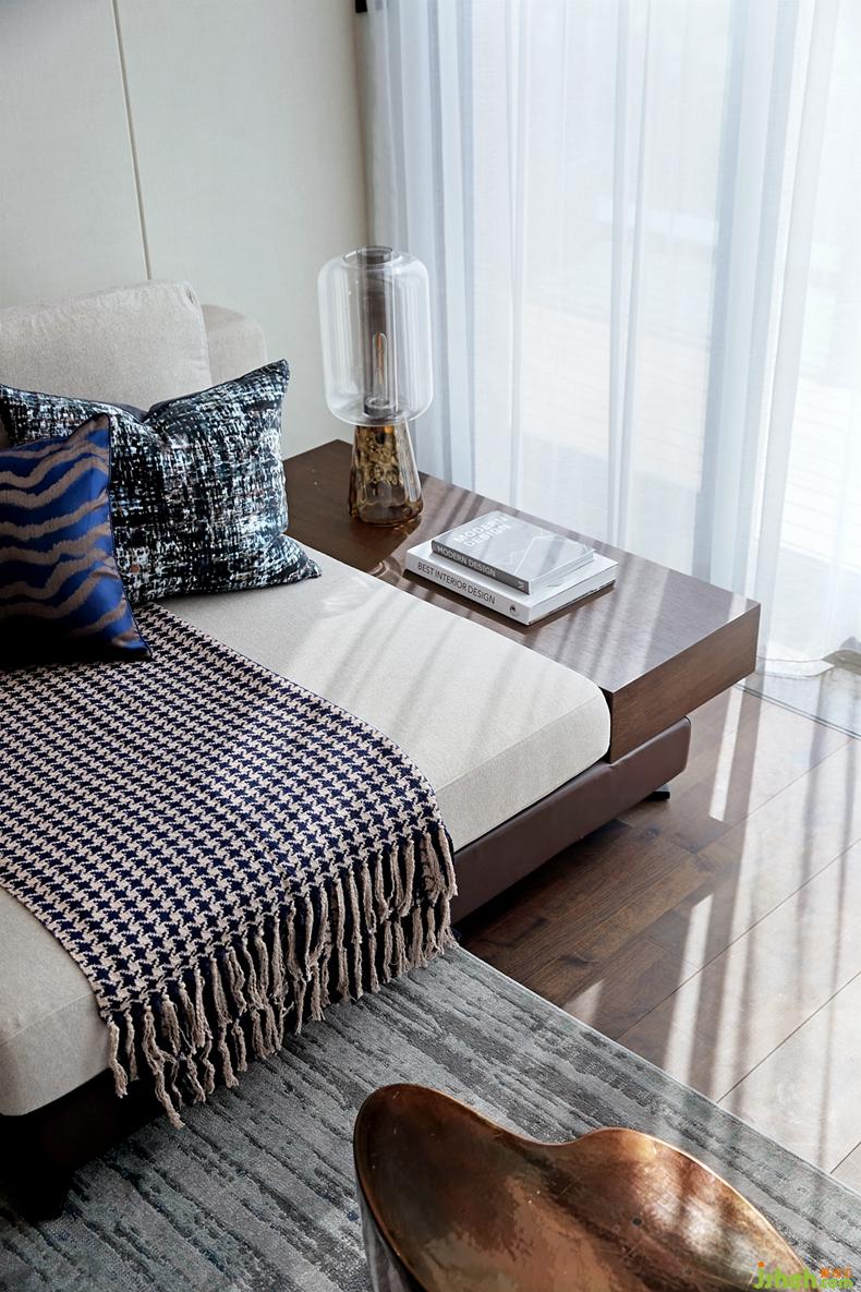 主臥室摒棄了過度的硬裝處理,視覺中大面積的留白,通過虛實,顯隱,相得益彰,線條與塊面的組合穿插,塑造出整體的協(xié)調(diào)感和節(jié)奏韻律。深圳別墅裝飾高挑移門巧妙將主臥衛(wèi)生間及衣帽間合理分隔,讓空間重疊于開放空間到私密空間之間,透過室外自然光線的變幻,從明亮緩緩帶入昏暗,營造出撫慰人心的生活起居所。