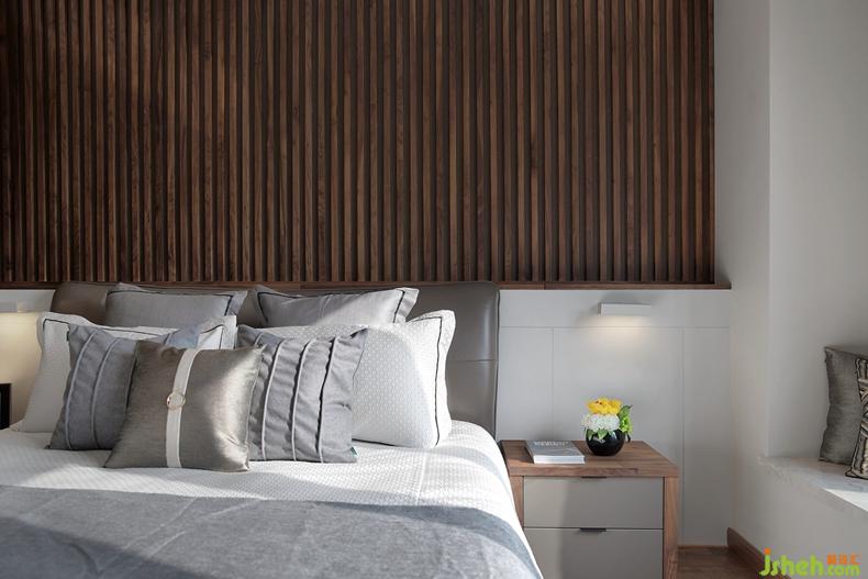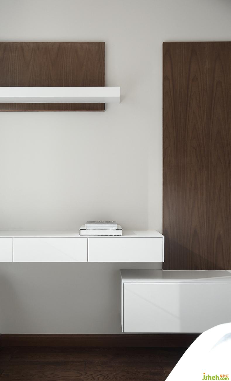 主臥是最?lèi)芤忾e適的地方,以穩(wěn)重雅致的胡桃木色作為房間的主色調(diào),與白色家具的交錯(cuò)更像是一幅幾何形塊的畫(huà)作,透過(guò)黑白關(guān)系,褪去張揚(yáng),優(yōu)雅而至。