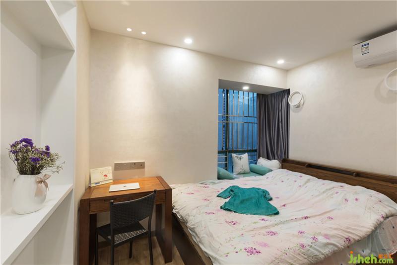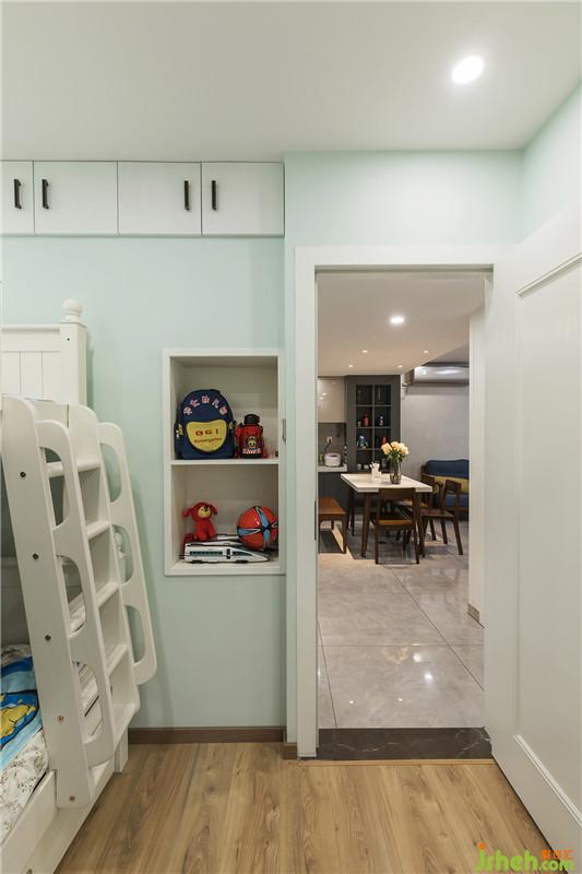 房間沒有過多的裝飾。主臥入門左手充分利用可敲除墻體增加了開放式收納柜,書架、收納柜、首飾柜綜合為一體,實(shí)用便捷。兒童房用色清新簡單,我們并沒有用卡通的設(shè)計(jì)元素來給小孩房貼標(biāo)簽。朝外開的衣柜后面我們掏了一個放書包的敞開式層板柜,實(shí)用便捷有趣味,實(shí)屬恰到好處的出現(xiàn)。這個層板柜和廚房酒柜形成有趣的呼應(yīng),形成獨(dú)特的節(jié)奏和韻律?,F(xiàn)場打造的L型書桌充分利用了窗臺位置,增加了儲物,也保證了整個空間沒有任何衛(wèi)生死角,線面更簡潔??头恳詼\綠色和白色為基調(diào),清新冷色調(diào),清爽且拉伸空間。我們在把床設(shè)計(jì)成榻榻米床和衣柜連體,實(shí)用規(guī)整。