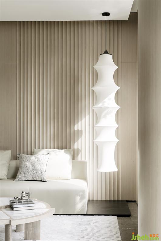 疊墅樣板房設計師在別墅一層的設計中,打破了傳統(tǒng)的客餐廳的布局,讓開放式廚房成為了視覺的中心和所以動線的連結。6200mm的一體化超長餐桌島臺,強調(diào)簡約美學與功能的平衡,提升烹飪的效率及美感,它當然可以輕松滿足家庭的餐廚需求。而通過島臺這個寬敞的社交與自由流通的空間,將其變?yōu)橐粋€吸引所有家人成員活動的磁石,才是本案設計的真正主旨。
