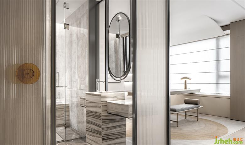 半透明的長虹玻璃隔墻使空間邊界模糊,擺脫傳統(tǒng)的以隔墻來控制布局的模式,疊墅樣板房設(shè)計(jì)使空間靈活多變,在保證私密性的同時(shí),使空間更具動(dòng)態(tài)與實(shí)用性。