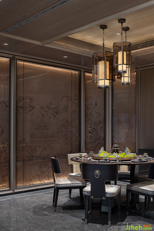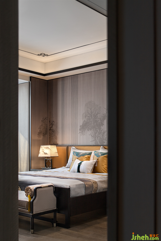 山水相逢,芙蓉入織。經(jīng)過(guò)再設(shè)計(jì)的芙蓉定制紋樣嵌入了沙發(fā)座椅的暖黃色的絲光面料中,別墅樣板房設(shè)計(jì)也鑲刻在了沉郁古樸的木制家具五金細(xì)部中。如同氣勢(shì)萬(wàn)千的國(guó)畫中,加入一些恰當(dāng)?shù)慕鈽?gòu)手法,讓畫風(fēng)更具有辨識(shí)度。派尚設(shè)計(jì)細(xì)膩入微的陳設(shè)藝術(shù)讓整個(gè)項(xiàng)目更具辨識(shí)度和儀式感,形式簡(jiǎn)潔純粹、色調(diào)溫暖,詩(shī)性生動(dòng)而靈韻萬(wàn)千。