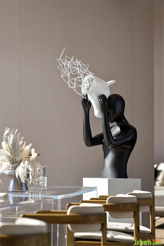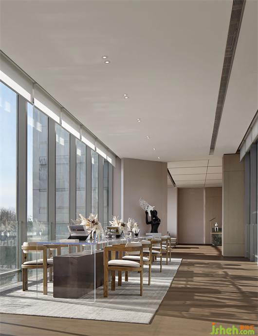 無(wú)所不在的光影,將生命中最珍貴的部分,照耀地更加鮮明而清晰。正因有光的介入,明確而清晰的界限被柔和的光影所替代,售樓處設(shè)計(jì)視覺(jué)所能觸及的溫暖,讓事物看似“連在了一起”,邊界柔和而模糊。
