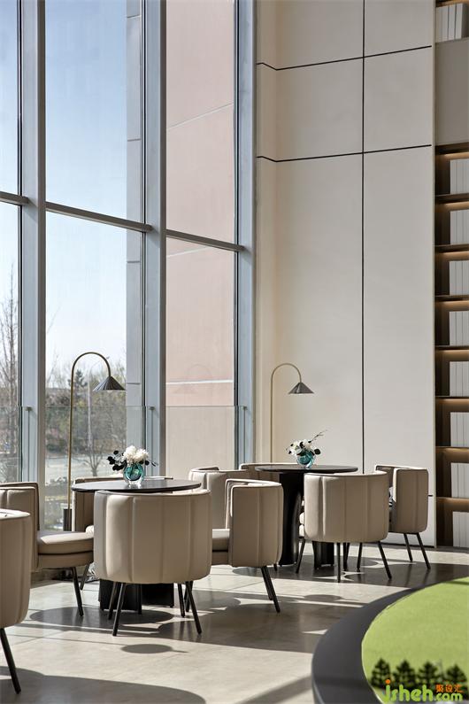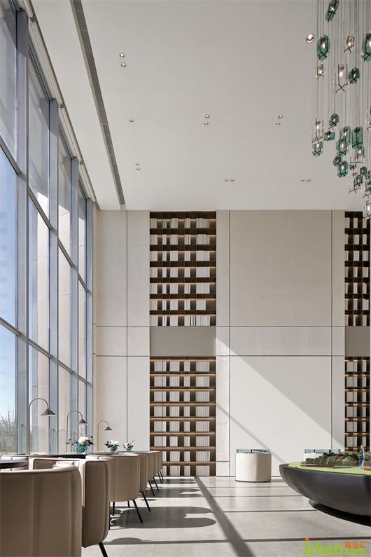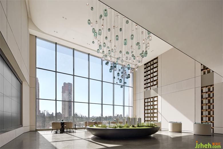 售樓處設計整面的玻璃墻,消弭了空間內外距離感,光作為連接現(xiàn)實與虛幻的媒介,營造出藝術無限延展的維度,足以讓訪客翱翔其中。