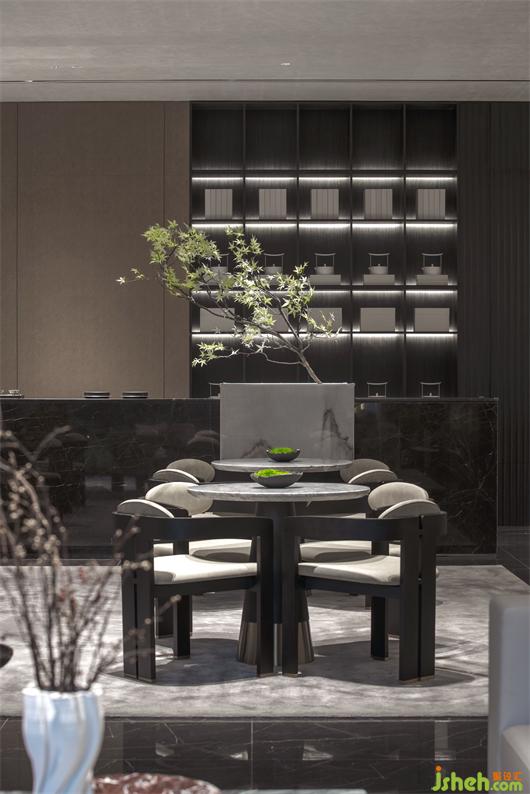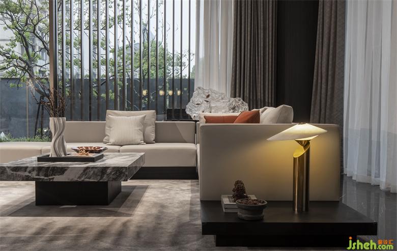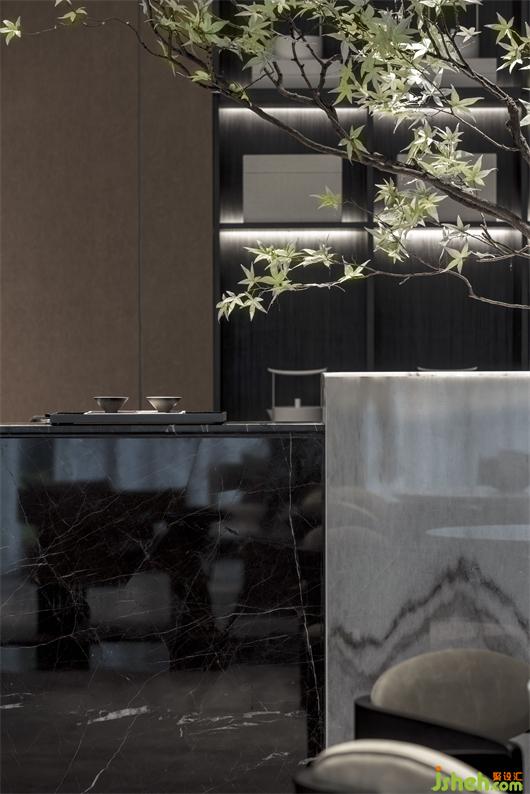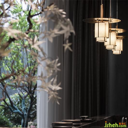 在諸暨,三江口一年一度的“水燈節(jié)” 聲名遠揚中元之夜,人們把燈具和紙船放入河內(nèi),順流而下,河上頓時燈火通明,搖曳擺動,如同天上點點繁星。售樓處設(shè)計師將水燈的元素加以提煉演繹,分散應(yīng)用到空間的各個角落。或靜置于臺面上,人的手微微觸碰燈體,浮動于磐石之上的暖色光源便緩緩亮起。