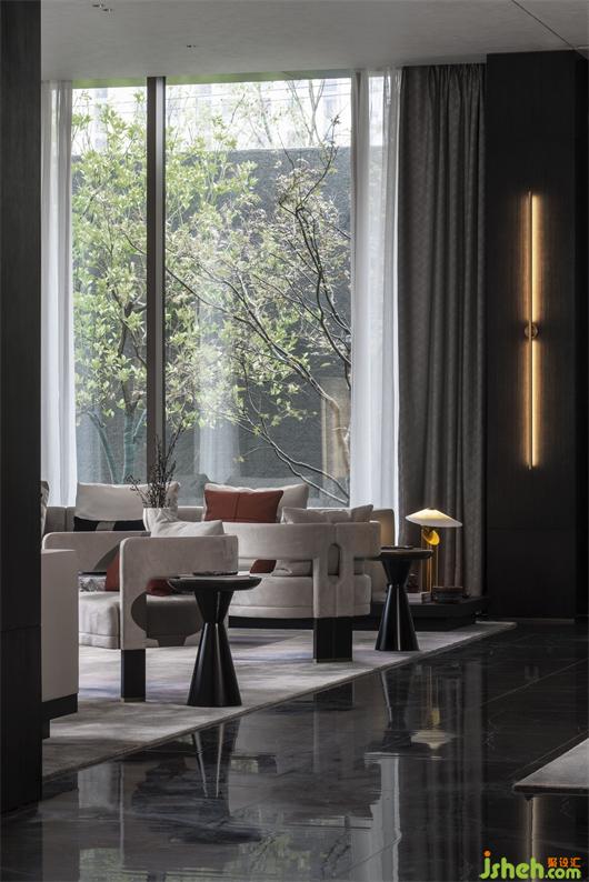 售樓處設(shè)計或?qū)⑺疅舻男误w,鏡像倒置,再于空中懸吊。此時彼時,人們也恍惚難辨,到底是身處燈火輝煌的人間,還是倒映著萬家燈火的的水下世界。
