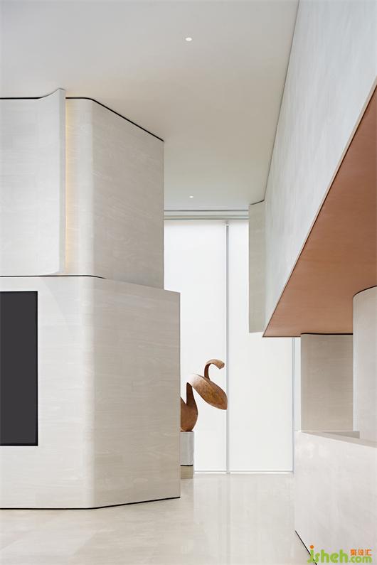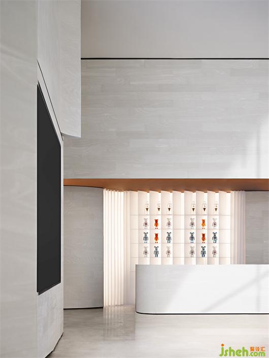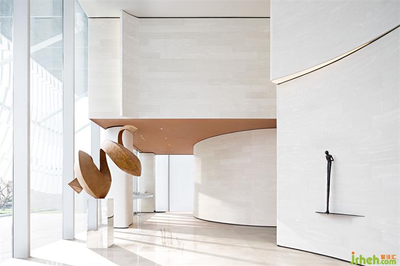 營銷中心設(shè)計師用迷人的曲線和光影,賦予了空間有機的生命力和通透的呼吸感。充滿張力的空間界面,墻地?zé)o邊的有機質(zhì)感,如同自然生長的建筑生命體。