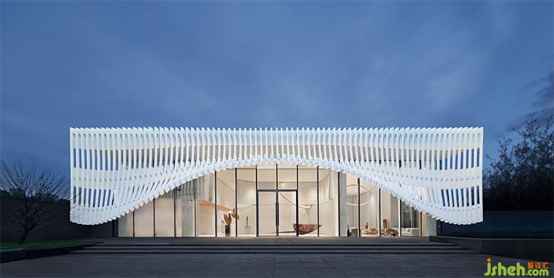 項目建筑形態(tài)猶如一個巨型雕塑,有著自身的體量感與雕塑感。主立面宛若一位美麗的女子,掀開了面紗,隱約能窺見其中的光影變幻,人在室內(nèi)行走的身影,夢幻而又神秘,讓人想一探究竟...