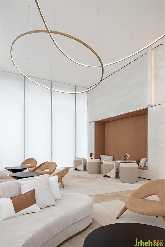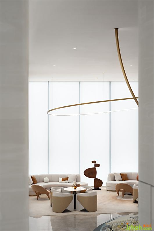 洽談區(qū)開放、流動的手法糅合充足的采光,空間用色干凈、簡約,但有著明確的層次,欠身而坐,室內(nèi)外以光相連。