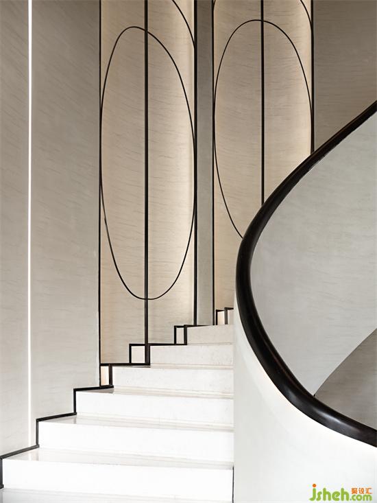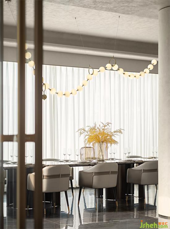 一樓大廳是匯集了非常重要社交功能的空間,連通了門廳、景觀餐廳、自助西廚、旋轉(zhuǎn)樓梯等多個功能節(jié)點(diǎn),高大的落民宿設(shè)計(jì)地窗也承載了整座建筑最佳的景觀。