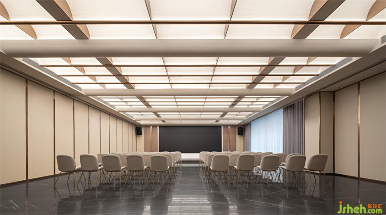 會(huì)議報(bào)告大廳簡(jiǎn)潔明快,民宿設(shè)計(jì)天花也延續(xù)了整個(gè)東家小院的序列感微穹頂結(jié)構(gòu)。照明系統(tǒng)柔和而有氛圍感。