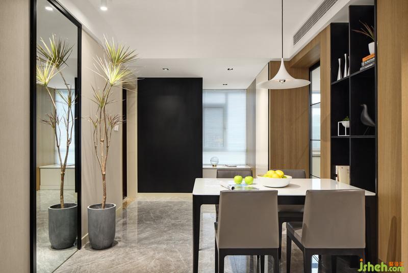 餐廳墻面呼應(yīng)電視墻,材質(zhì)統(tǒng)一,實(shí)用美觀。